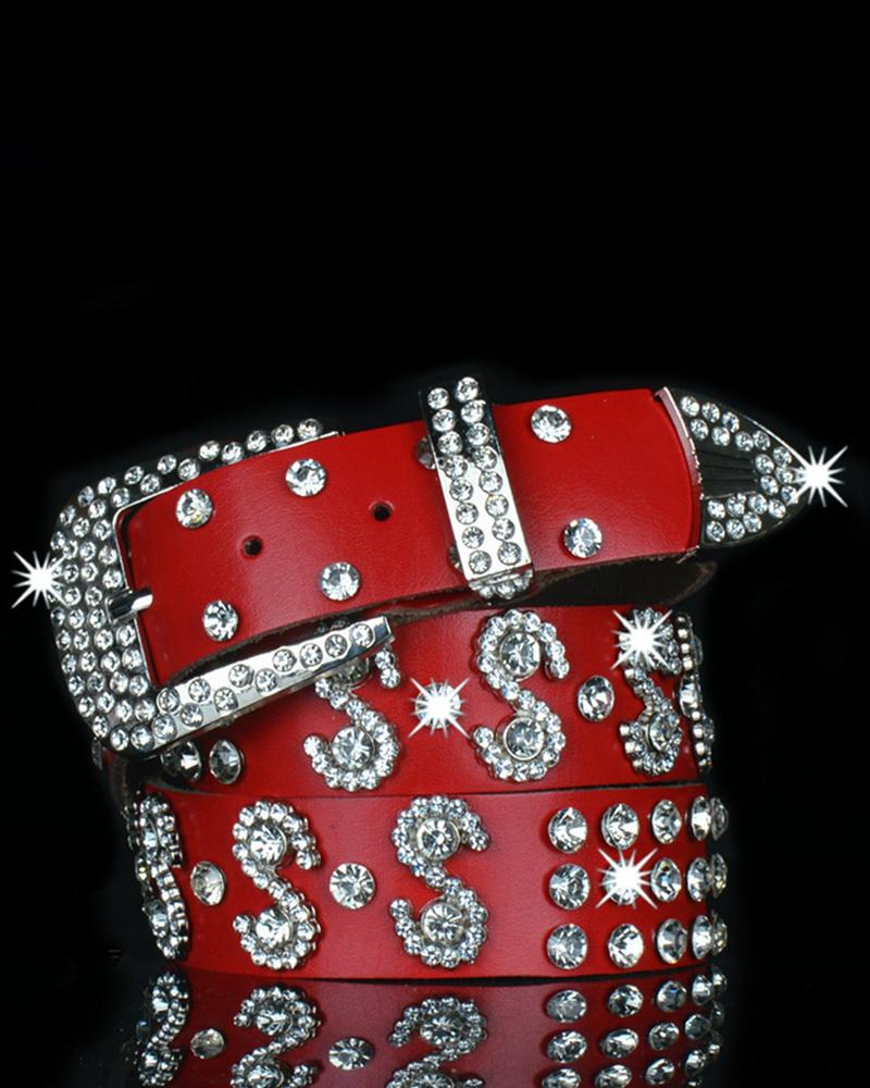 Letter Pattern Rhinestone Decor Buckled PU Leather Belt, Red