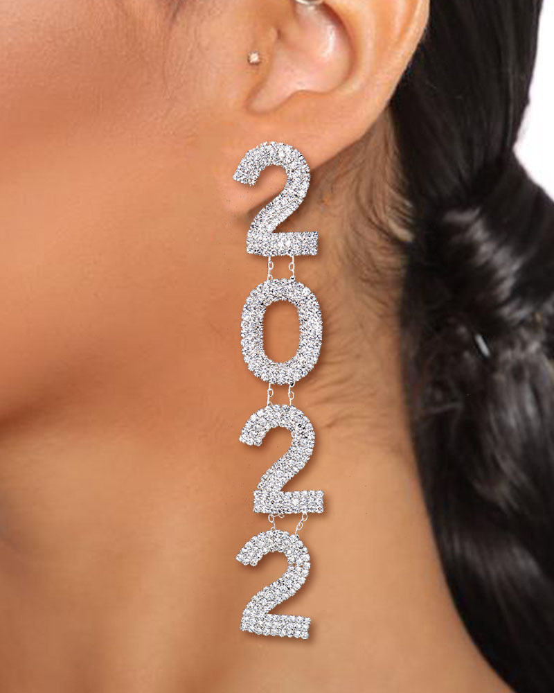 Letter Pattern Rhinestone Drop Earrings, Silver