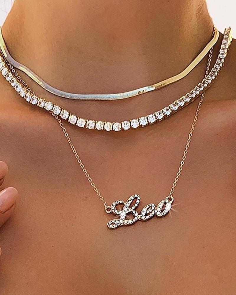 Letter Pattern Rhinestone Layered Necklace, Style2