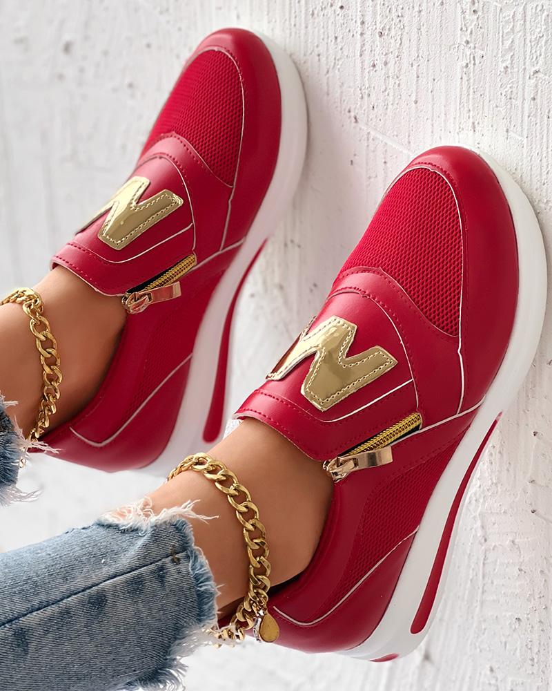 Letter Pattern Side Zipper Sneakers, Red