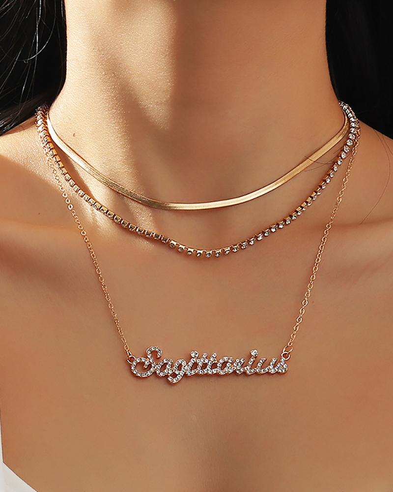 Letter Pattern Studded Layered Necklace, Style4