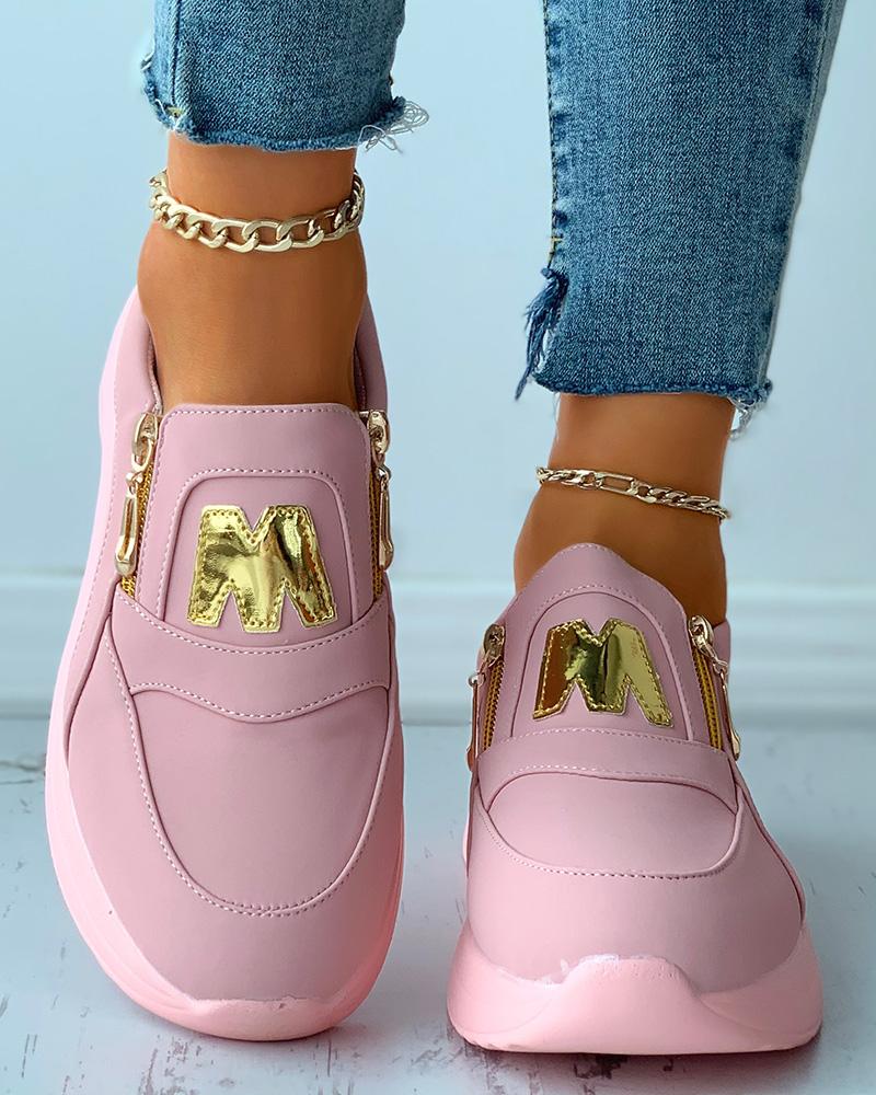 Letter Pattern Zip Decor Wedge Sneaker, Pink
