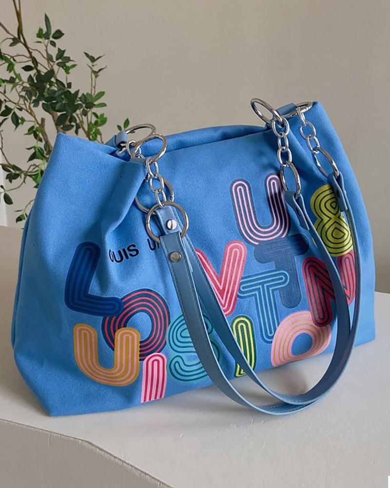 Letter Print Canvas Tote Bags, Blue