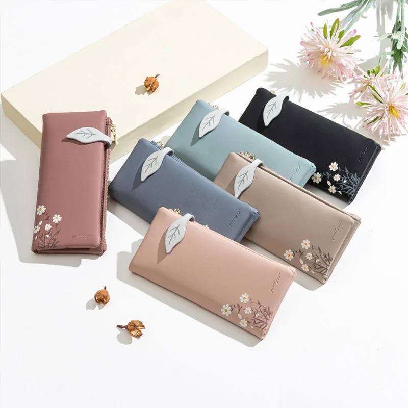 Leaves Long Fashion Wallet Women Hasp Zipper Purse SOFT Pu Leather Ladies Wallet Card Holder High Capacity