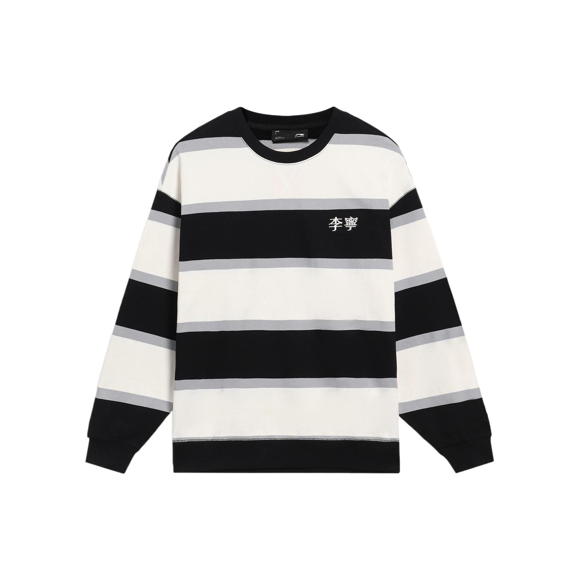 Li-Ning SS22 Спортивная модная серия Color Block Полосатый круглый вырез длинный рукав Толстовка унисекс Толстовка Черный Белый AWDS537-1 S