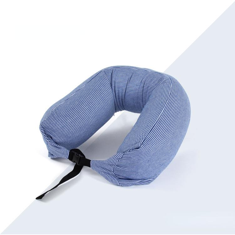 Liangpin Подушка для шеи Полосатая подушка с частицами Подушка для шеи автомобиля Подушка цилиндрической формы в японском стиле Дорожная подушка синий