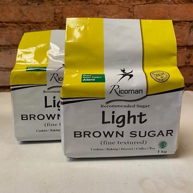 Ricoman Light Brown Sugar adalah Brown Sugar yang populer digunakan disetiap resep kue/roti ataupun makanan. Memiliki tekstur yang lembut, wangi yang khas dan rasa karamel yang soft. Perbedaan Ricoman Light Brown Sugar dengan Dark Brown Sugar adalah rasa karamel yang lebih halus dan warna kecoklatan yang lebih muda.