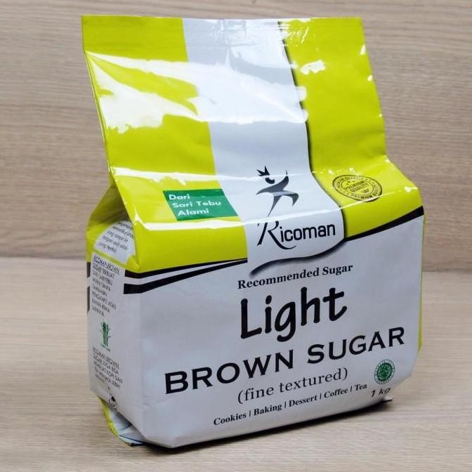 Ricoman Light Brown Sugar adalah standard brown sugar yang ada di dalam resep. Terbuat dari sari tebu alami. Memiliki tekstur yang lembut, wangi khas brown sugar, dan rasa karamel yang soft. Rasa yang dimiliki akan lebih soft jika dibandingkan dengan Ricoman Dark Brown Sugar.