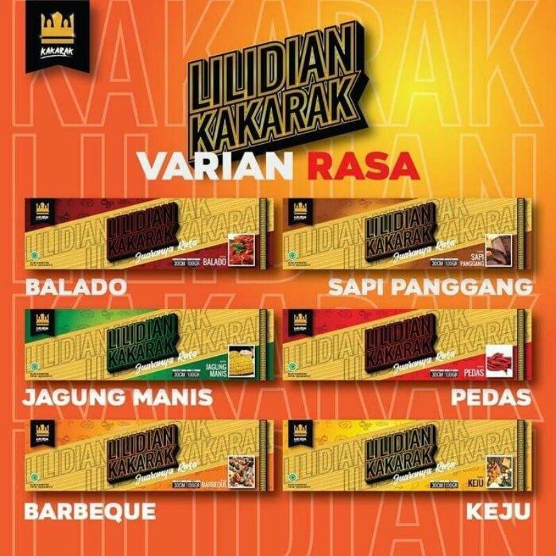 yups lilidian kakarak, terbuat dari mie lidi pilihan dengan rasa yang khas dan bumbu rempah rahasia yang membuatsensasi rasa mie lidi nya semakin khas, lidinya sepanjanng 30 cm , empuk, renyah
