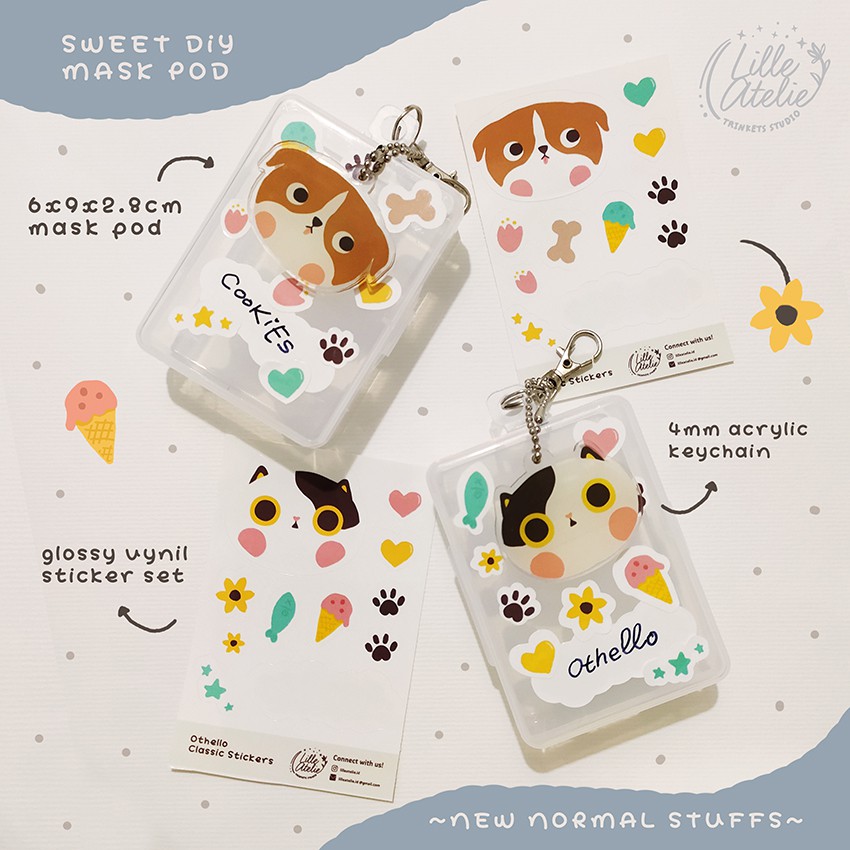A compact mini box to store your mask and other essential needs. With cute keychain and DIY sticker sheets to decorate your mask pod~