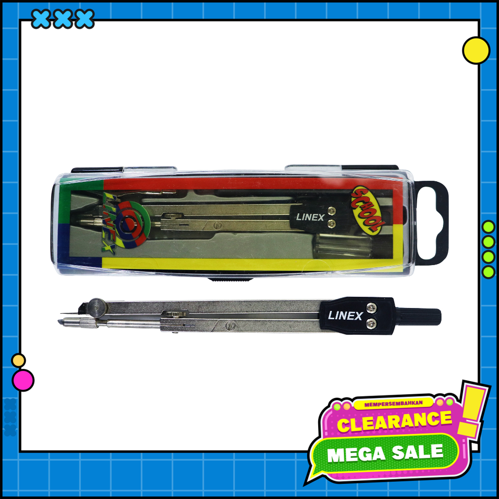 "Jangka untuk sekolah dengan trek pen dan batang yang dapat ditekuk dengan lubang trek pen. Tersedia refill pinsil