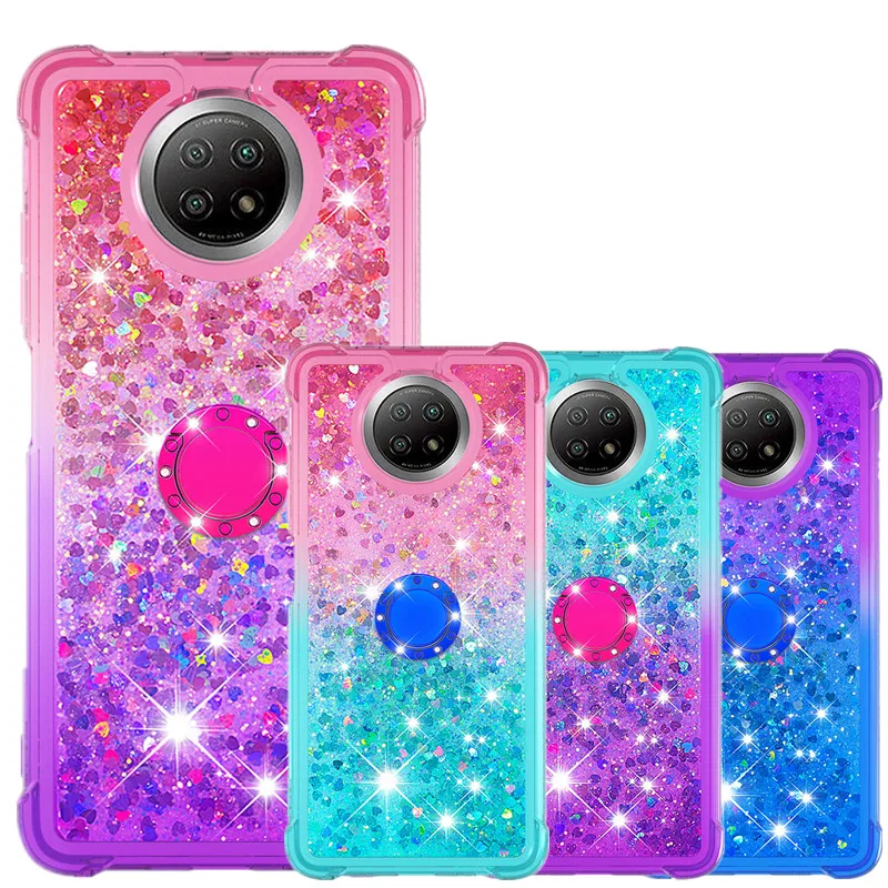 Liquid Glitter Finger Ring Case for Xiaomi Mi Poco M3 Redmi Note 9 9T 5G Redmi 9 Power Phone Case Soft Silicone Stand Cover Capa