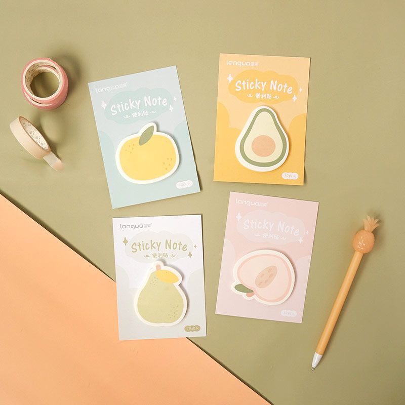 Catatan tempel dengan beragam warna dan variasi buah, untuk kamu dengan beragam aktivitas dan setumpuk rencana. Pelengkap yang pas untuk koleksi stationery-mu.