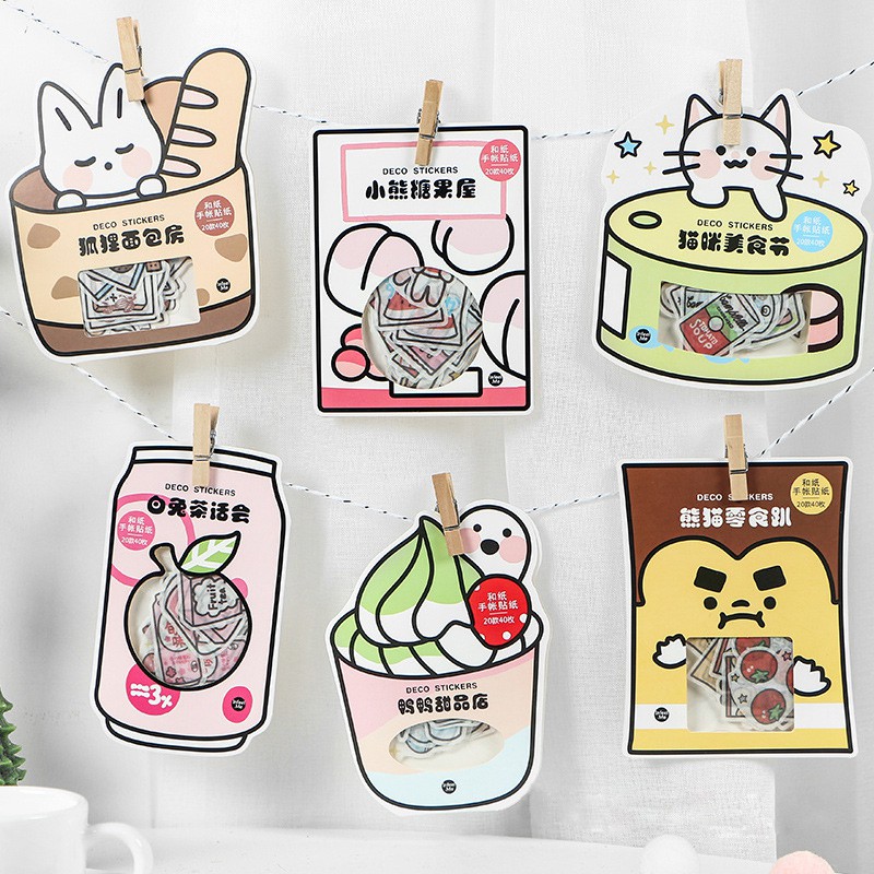 Apapun cemilan favoritmu, pilihan dessert dan snack di sini bakal bikin lapar. Binatang-binatang lucu dengan makanan kesukaan mereka hadir dalam set stiker washi bergaya Jepang ini, untuk mendatangkan keimutan pada setiap halaman tulisanmu. Kawaaii!