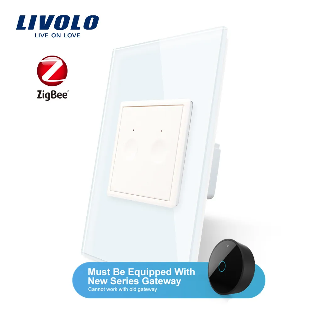Livolo US Standard 2 gang 1 way zigbeeswitch, Crystal Glass Panel, 110~250V Wall Power Outlet, standard 16A,without logo