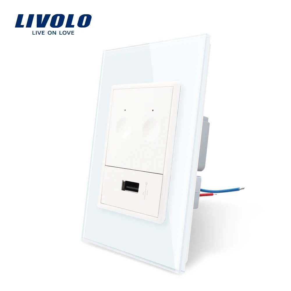 Livolo US Standard 2gang 1way switch with USB socket, Crystal Glass Panel, 110~250V Wall Power Outlet, without logo