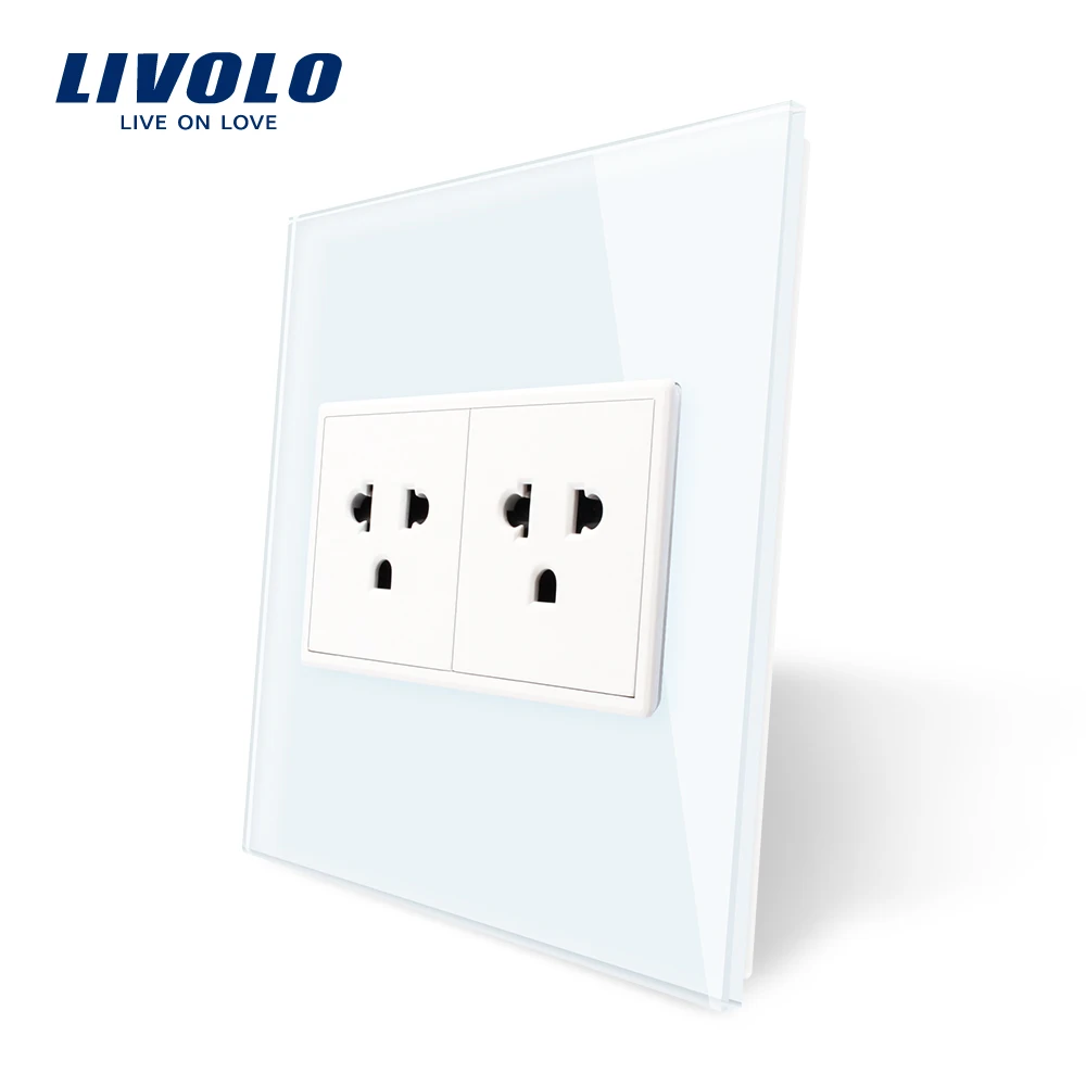 Livolo US Standard Double Power Socket, Crystal Glass Panel, 110~250V 16A Wall Power Outlet, standard 16A,without logo