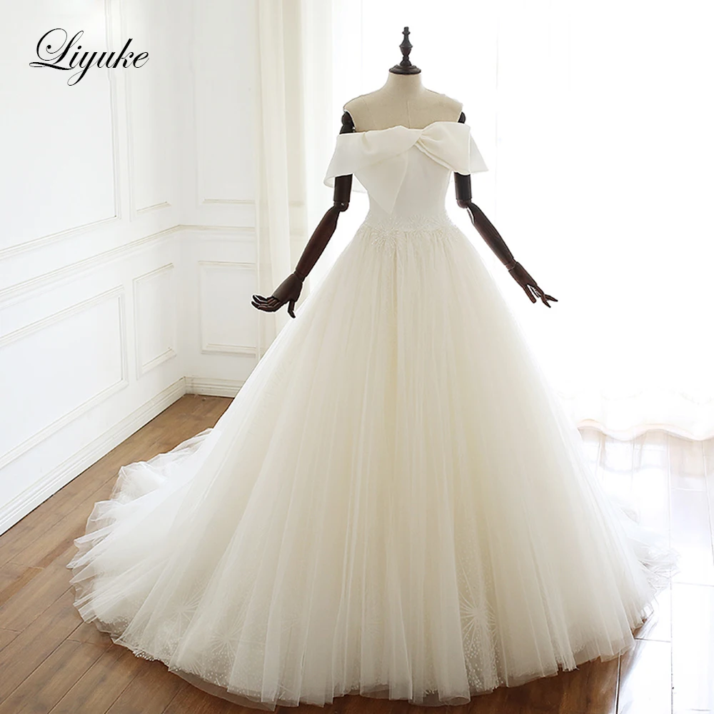 Liyuke свадебное платье А-силуэта с открытыми плечами и бантом на груди