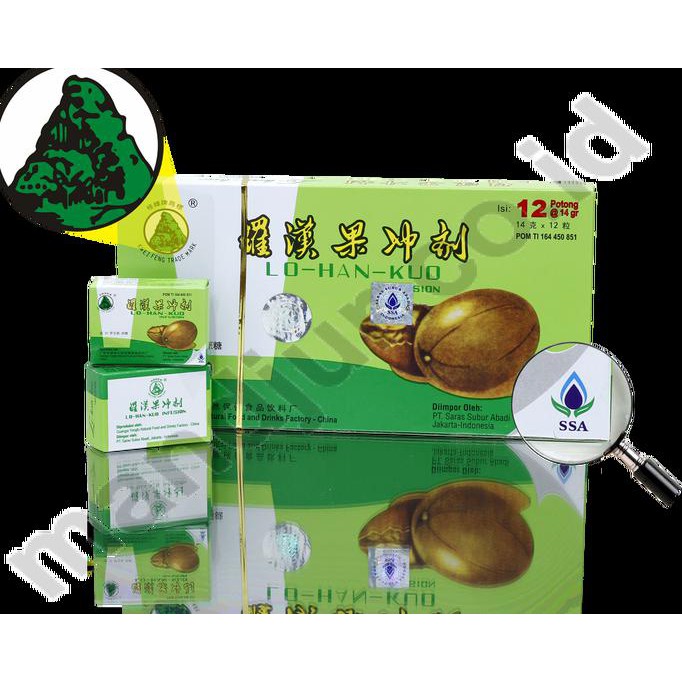 Lo Han Kuo Infusion terbuat dari sari buah Lo Han Kuo pilihan yang dipadukan dengan Cane Sugar sehingga menghasilkan minuman yang menyegarkan, menyejukan, enak rasanya, baik untuk kesehatan. Lo Han Kuo Infusion berkhasiat mengatasi panas dalam, sariawan, sakit tenggorokan, meredakan batuk dan menghilangkan reak, dan menguatkan paru - paru.