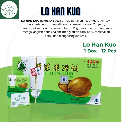 LO HAN KUO INFUSION secara Traditional Chinese Medicine (TCM) berkhasiat untuk memelihara dan melembabkan Yin paru, mendinginkan paru, meredakan batuk. Digunakan untuk membantu menghilangkan panas dalam, menguatkan paru-paru, meredakan batuk dan menghilangkan reak.