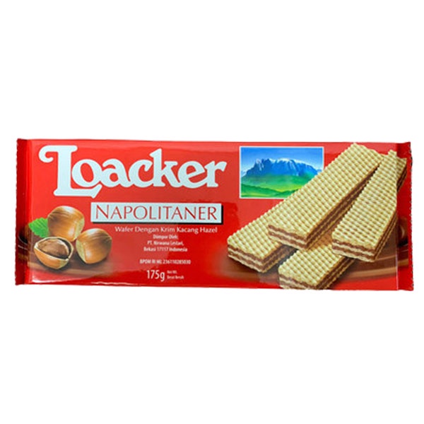 Loacker Wafer Napolitaner [175 gr] Bagi Anda penggemar wafer mungkin sudah tidak asing lagi dengan camilan Loacker Quadratini. Dimana, produk ini selalu menjadi pilihan tepat dengan varian rasa yang lezat dan renyah untuk dikonsumsi. Bahkan, Camilan yang memiliki tesktur renyah ini memiliki berbagai rasa seperti Cappucino, Napolitaner, Chocolate dan Dark Chocolate yang menjadikan wafer ini banyak disukai masyarakat. Apalagi, empat lapisan krim yang lembut membuat kelezatan wafer terasa nikmat disetiap gigitannya.