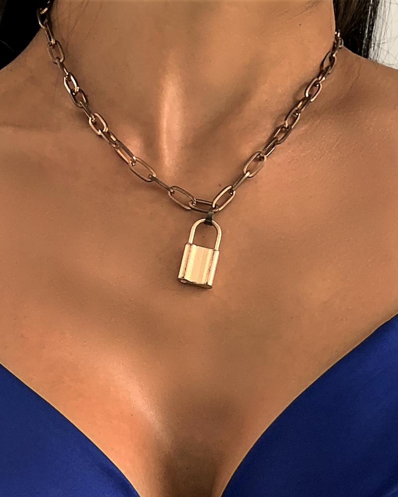 Lock Decor Simple Chain Necklace, Gold