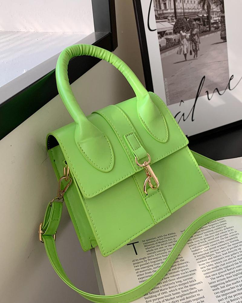 Lock Flap Shoulder Bag With Handle, Green
