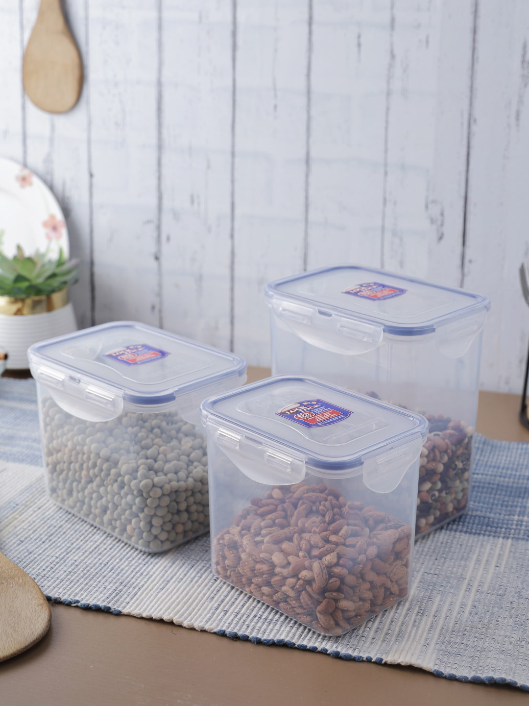 Lock & Lock Set Of 3 Transparent & Blue Airtight BPA Free Plastic Food Storage Containers