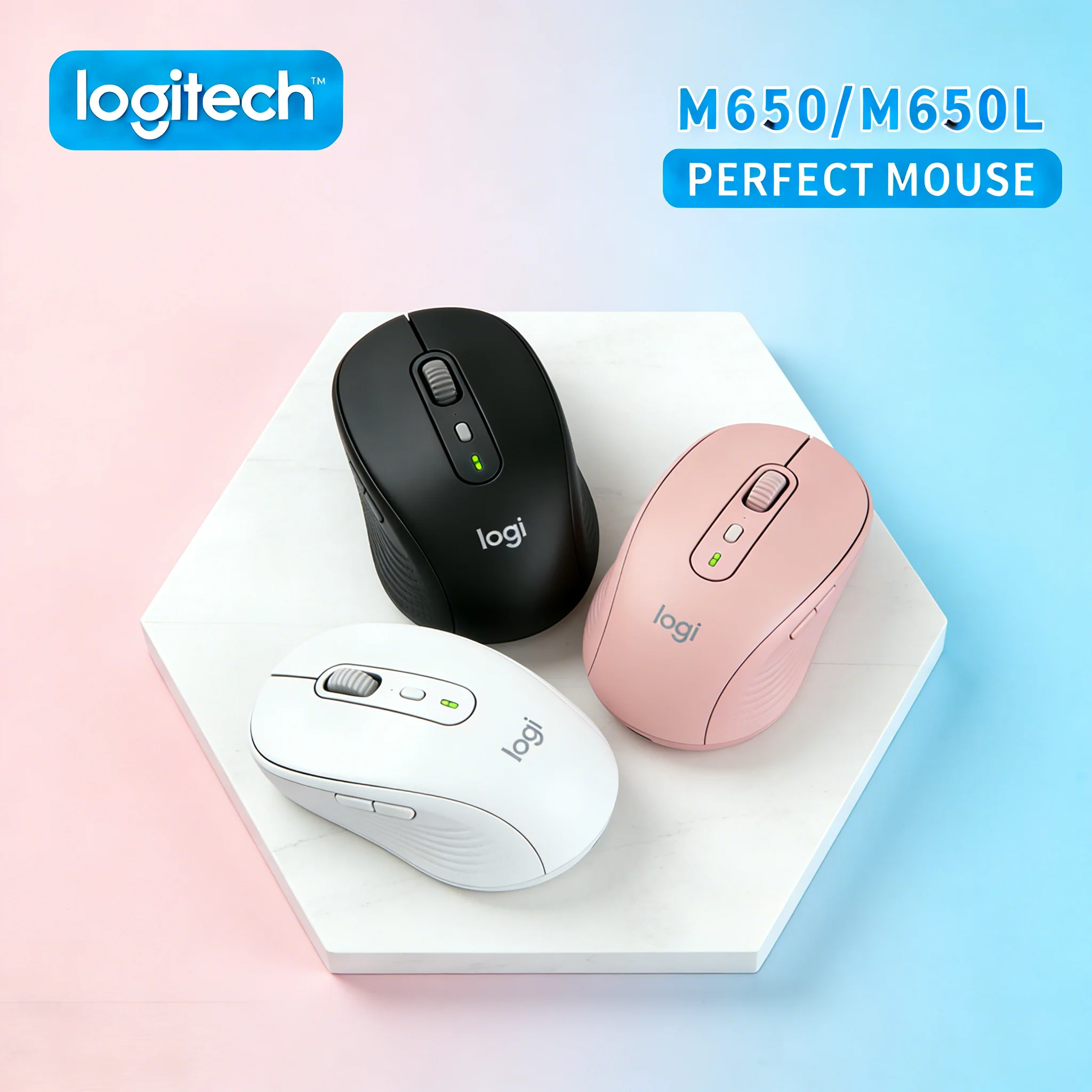 Logitech M650 Dual-Mode Wireless Mouse with Silent Click Ergonomic Design, Smart Wheel & Customizable Buttons + MX3S/M350/M330