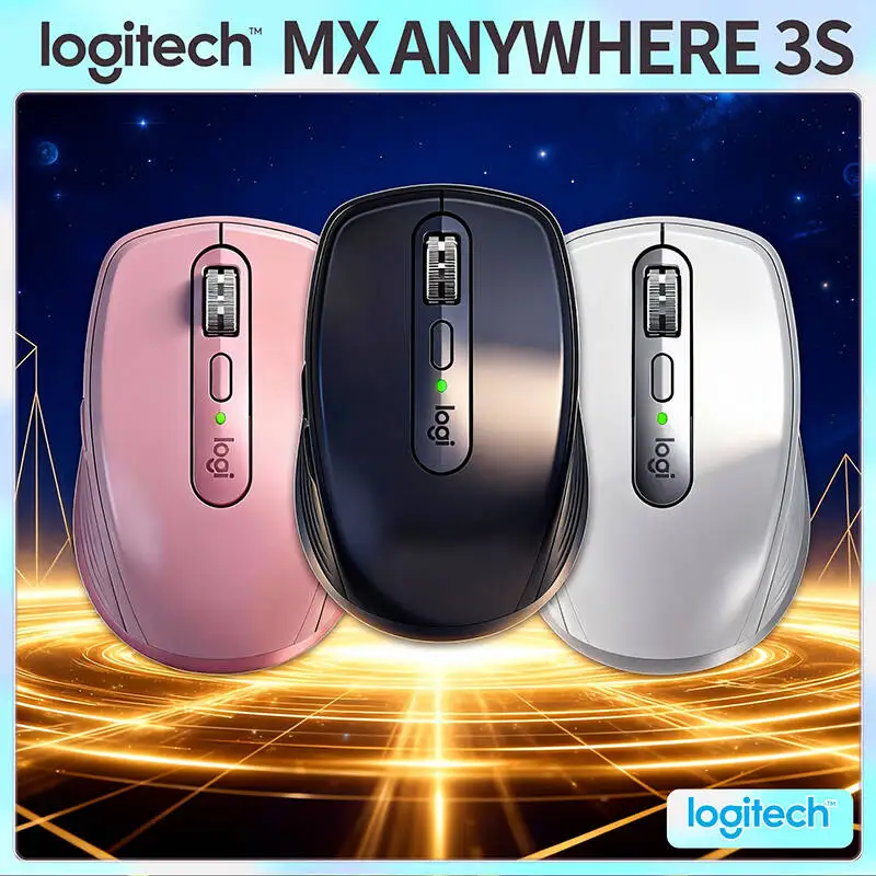 Logitech MX Anywhere 3S Ergonomic Mouse - 8K DPI Glass Tracking, MagSpeed Wheel, 3-Device Sync, USB-C Charging, Office Use