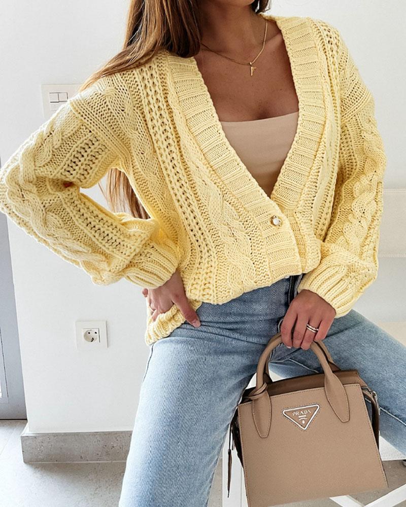 Long Sleeve Button Front Cable Knit Cardigan, Yellow