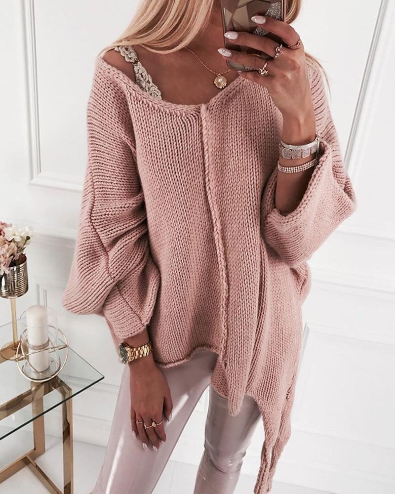 Long Sleeve Irregular Knit Top, Pink