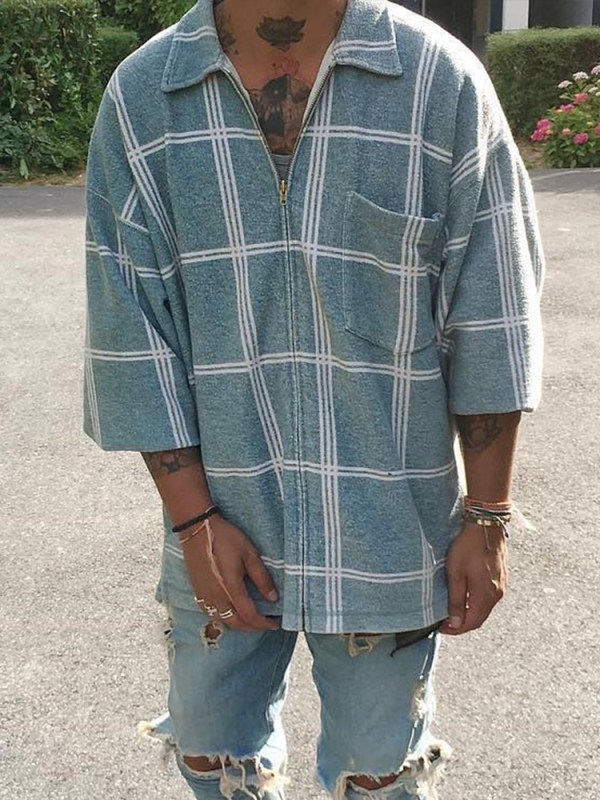 men tops,loose casual check shirt