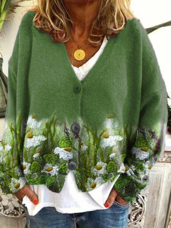Loose Casual Hot Sale Flower Printed Knitted Cardigan