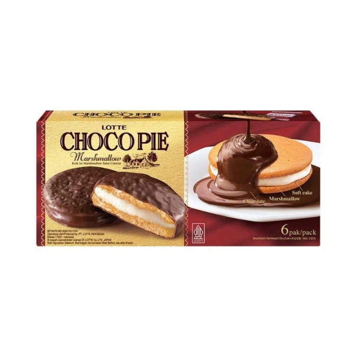 Lotte Choco Pie Marshmallow merupakan biskuit renyah yang dipadukan dengan kenyalnya marshmallow serta diselimuti dengan krim cokelat yang tebal. Biskuit ini memiliki tekstur yang renyah dan marshmallow yang lembut, menghasilkan rasa yang manis serta lezat. Lotte Choco Pie Marshmallow aman dikonsumsi karena telah terdaftar di BPOM dan memiliki sertifikat Halal MUI.