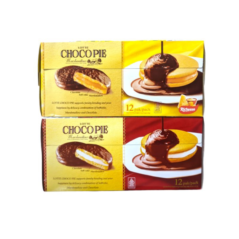 Lotte Chocopie Marshmallow Rasa Coklat & Richeese 1 Box (isi 12 Pcs)