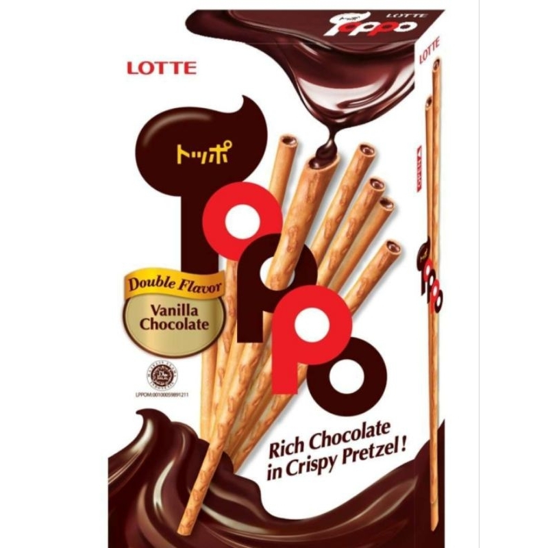 Lotte Toppo Vanilla Chocolate Coklat Box 17 gram isi12 Sachet