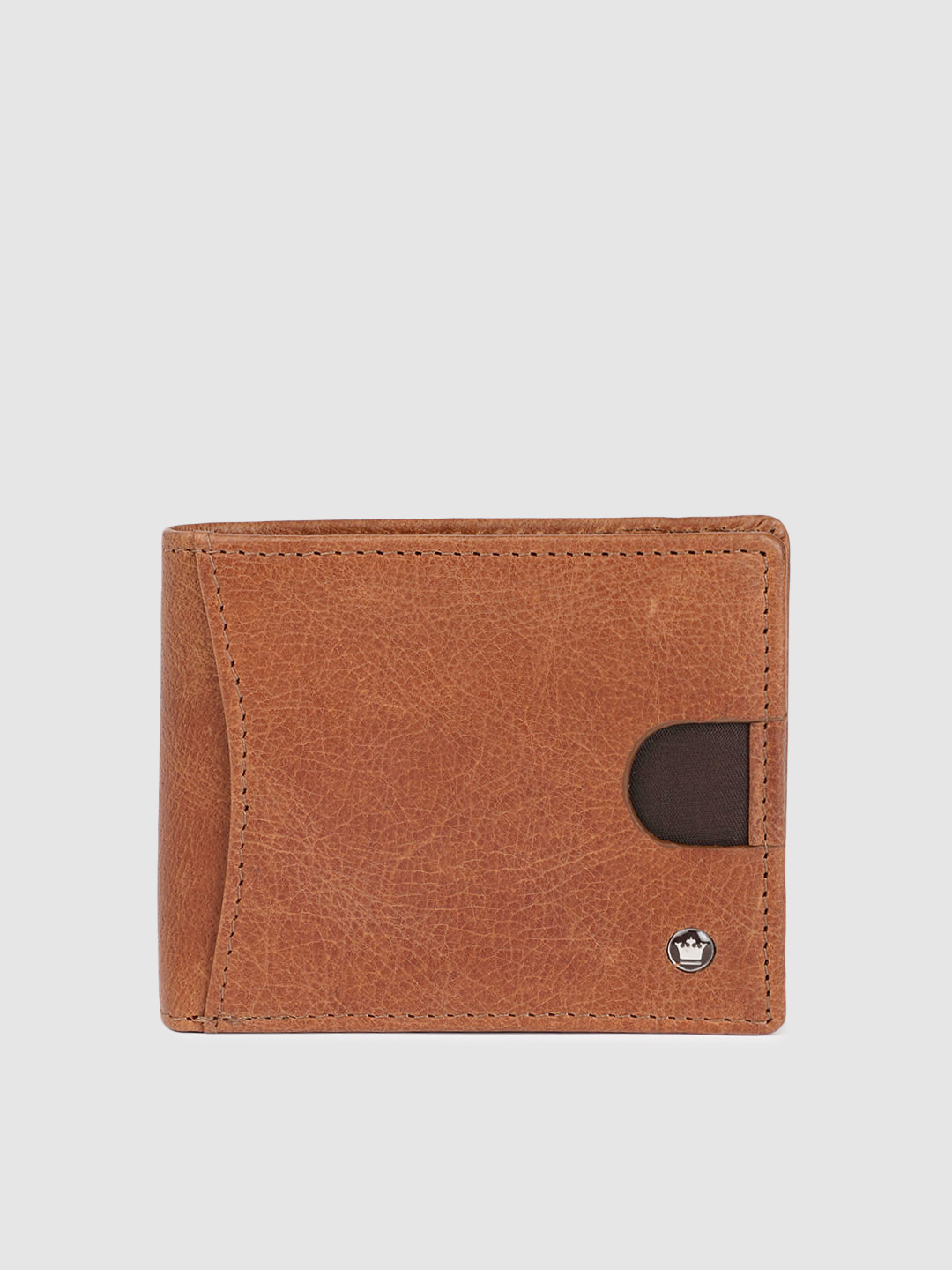 Tan solid two fold wallet,2 main compartments,3 card holders, 2 slip pockets, has a flap coin pocketWarranty: 6 monthsWarranty provided by brand owner/manufacturer