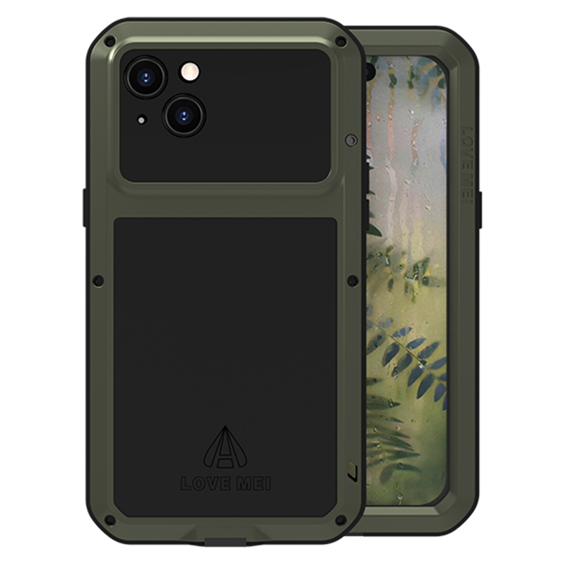 Love Mei Для Iphone 15 Plus Case Metal+силиконовая Крышка с Измельченной Стеклянной Пленкой - Зеленый, iPhone 15 Plus