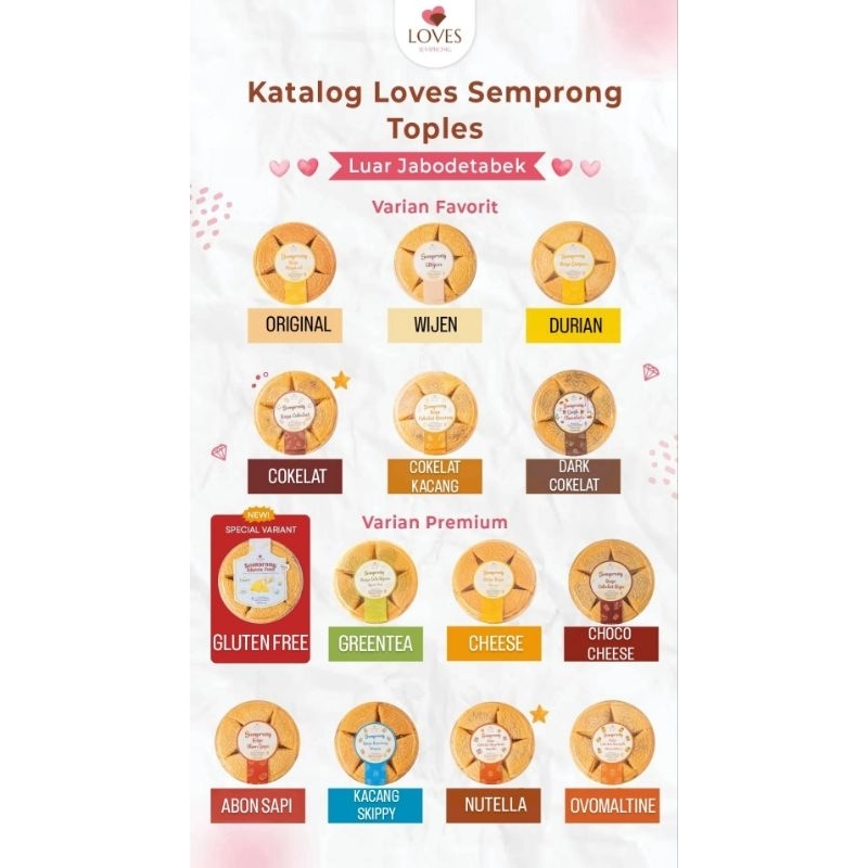 Semprong snack jadul yang di modifikasi menjadi snack kekinian dengan berbagai varian isi di dalamnya. Renyah, gurih, manis menyatu dalam sekali gigitan