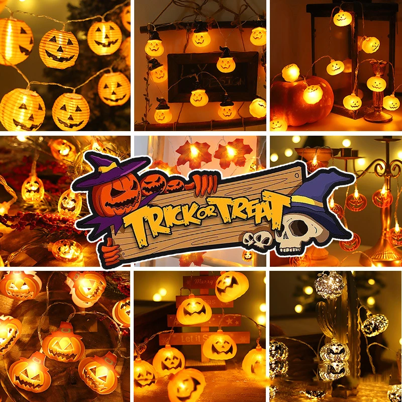 LuanQI светящаяся гирсветильник на Хэллоуин s Солнечная Тыква паук летучая мышь череп светящаяся гирлянда на батарейках для Хэллоуина вечерин...
