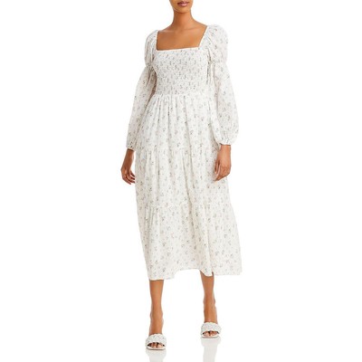 Lucy Paris Женский сарафан с цветочным принтом длиной до колен и пышными рукавами BHFO 1959, White floral