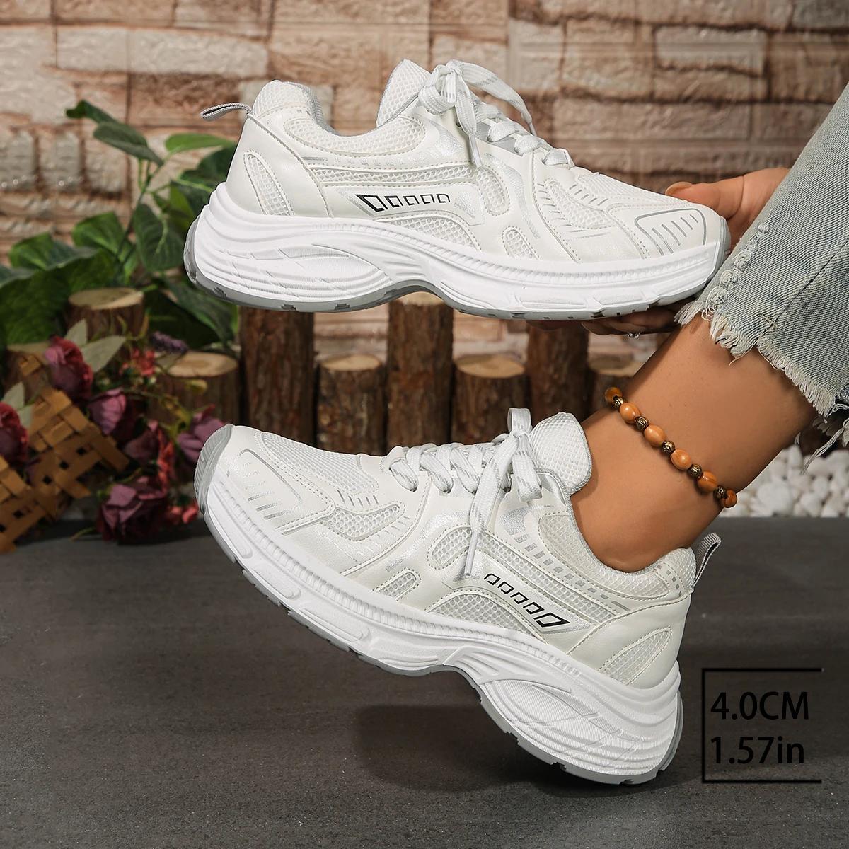 Lucyever 2024 Серебряные кроссовки на массивной платформе для женщин, модная дышащая спортивная обувь на шнуровке, женская удобная обувь для папы с толстой подошвой 41 белый
