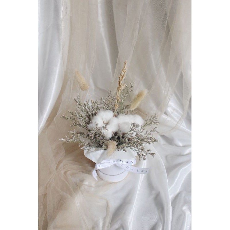 - Consist of (all Imported flower) : dried babys breath, cotton, caspea, bunny tails untuk harga 200.000