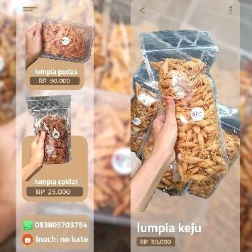 Lumpia Kering Coklat Keju: Kombinasi sempurna antara rasa coklat yang manis dan keju yang gurih. Produk ini cocok untuk yang mencari sensasi rasa yang unik.
