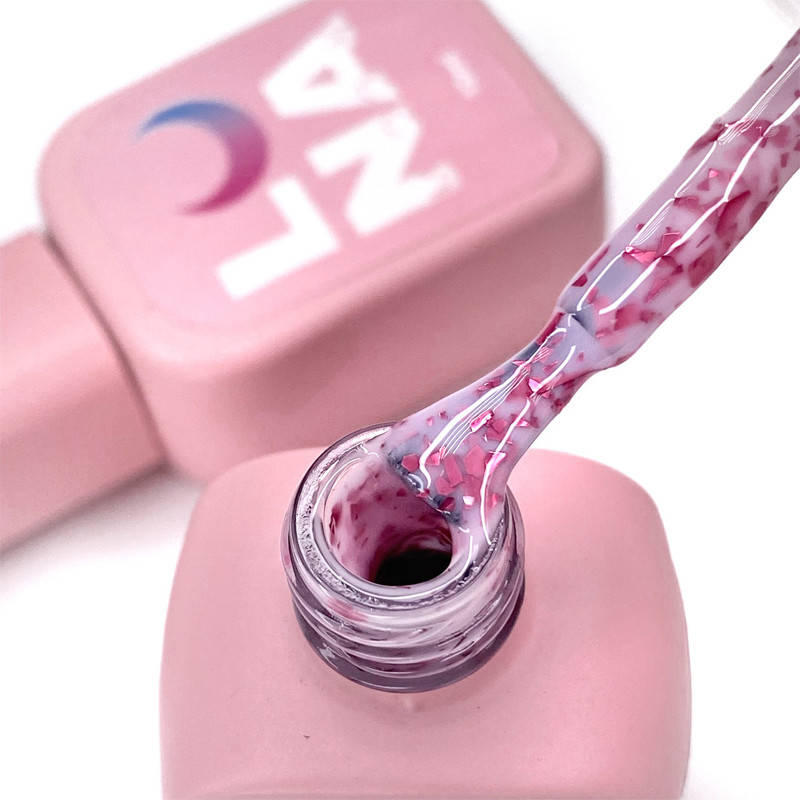 Luna Yuki Base № 08 - камуфлирующая база для гель-лака (молочая с розовыми хлопьями потали), 13 мл