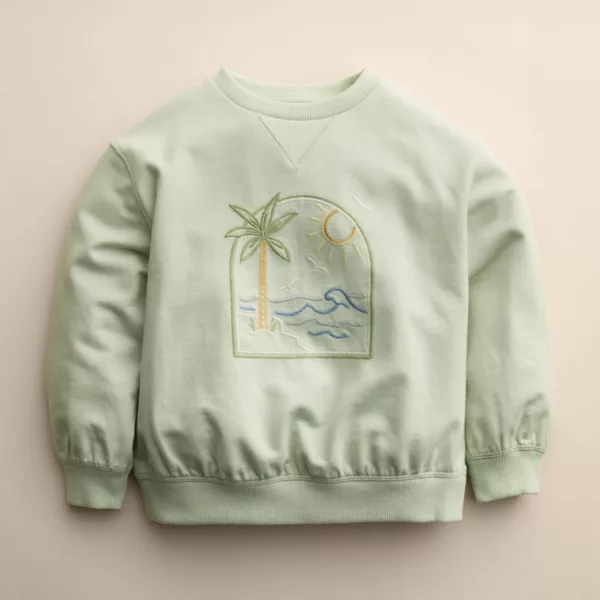 Детский свитер из органического французского трикотажа с круглым вырезом для детей 4–12 лет Little Co. By Lauren Conrad, цвет green multi scene