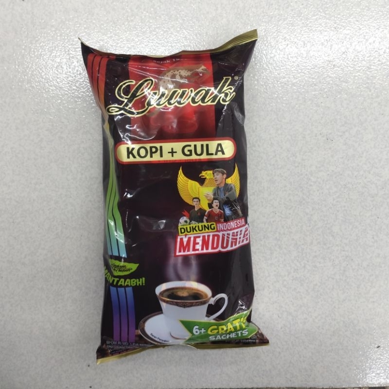 Luwak Kopi Gula Isi 6+2 Sachet dibuat dari biji pilihan dan Gula, dan diolah dengan mesin.