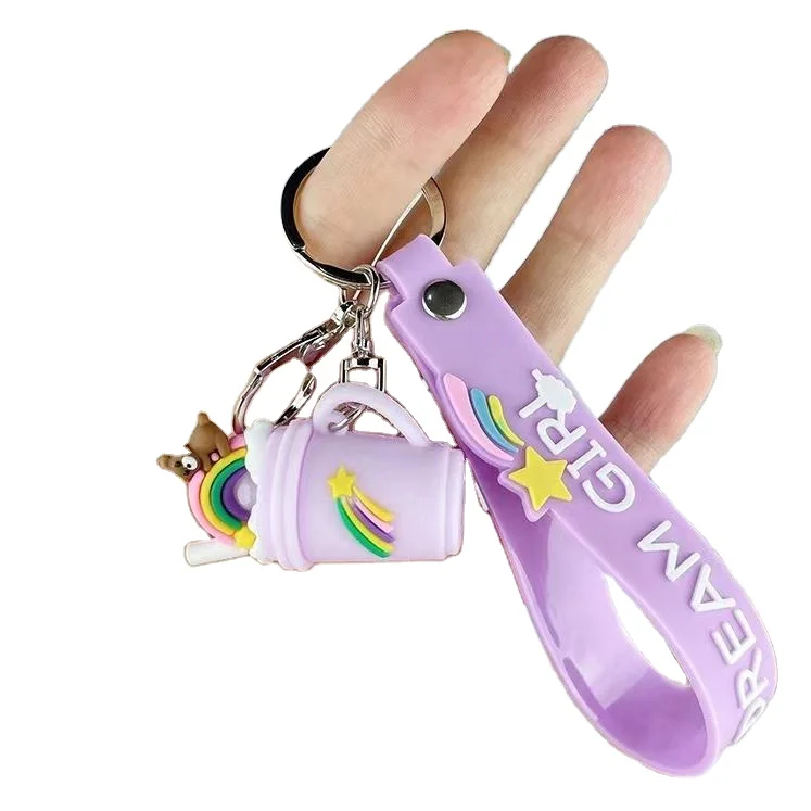 Wholesale Promotional Ice Cream Rainbow Soft Rubber Colorful PVC Keychain For Key Decoration