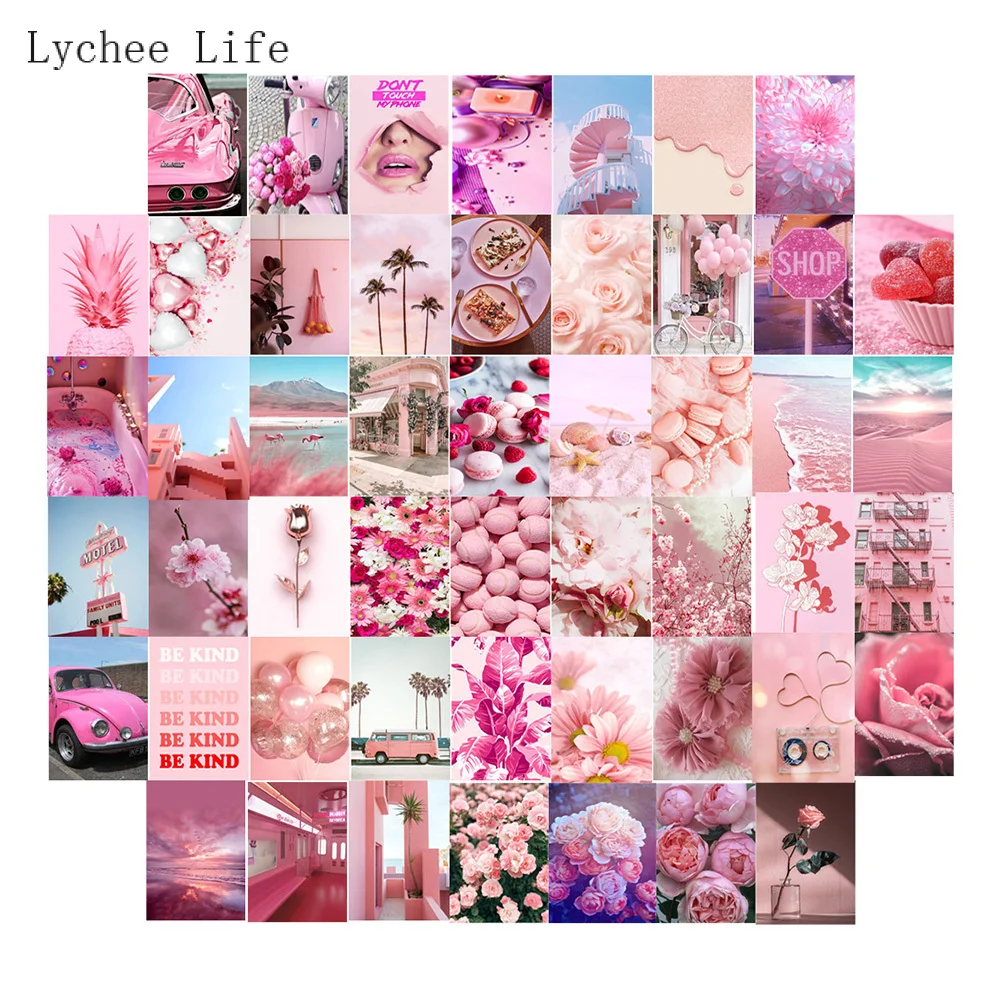 Lychee Life 50 шт. розовый цвет настенное искусство Скрапбукинг наклейка коллаж набор современный минималистичный цветок растения картина плака...